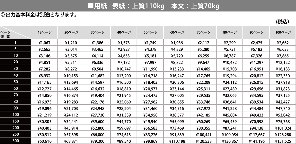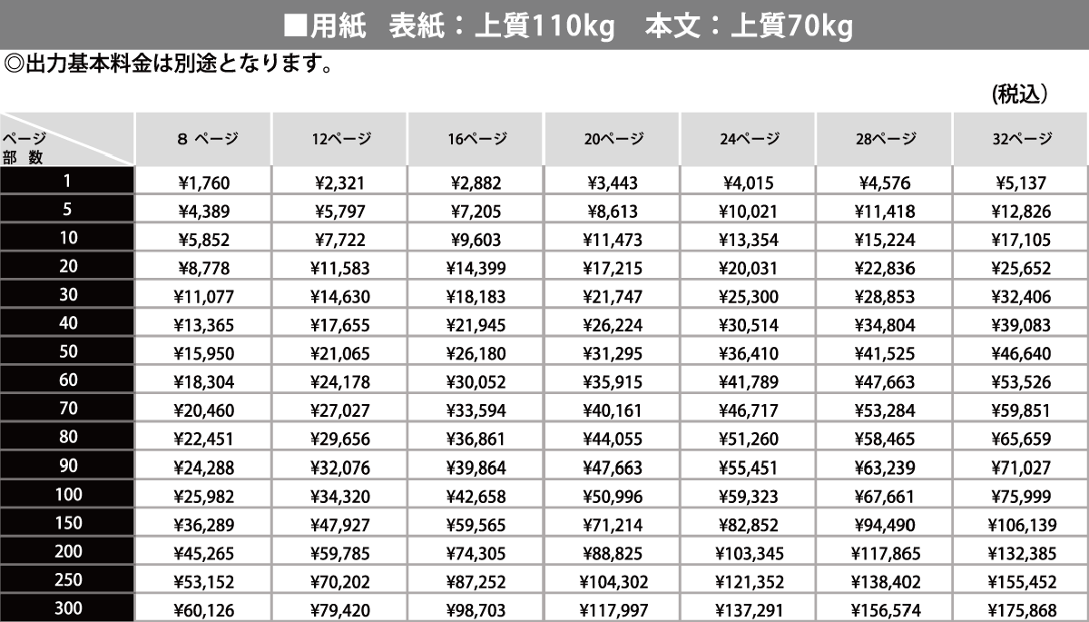 HOME | 冊子料金表 冊子料金表 ▌中綴じ製本料金表 中綴じ モノクロ印刷 A4・B5 中綴じ カラー印刷 A4・B5 中綴じ モノクロ印刷 A4・B5 中綴じ カラー印刷 A4・B5 ▌無線綴じ製本料金表 無線綴じ モノクロ印刷 A4・B5 無線綴じ カラー印刷 A4・B5 無線綴じ モノクロ印刷 A4・B5 前のページへ